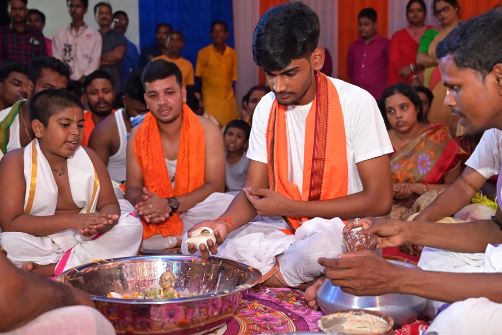 Following the Abhishek, a special Puja is conducted, where offerings of fresh flowers, fruits, sweets, incense, and lamps are made to Lord Krishna. The night-long celebration continues with kirtan, scriptural readings, and the performance of a powerful Yagya (fire ceremony). This sacred fire ritual is dedicated to global well-being, peace, and harmony, invoking divine blessings for all beings across the world.