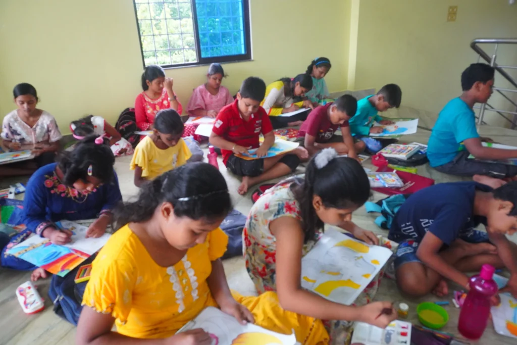 With themes centered around Krishna’s divine pastimes—such as Krishna with the cows in Vrindavan, the lifting of Govardhan Hill, Rasa Leela, or Baby Krishna stealing butter—participants are encouraged to bring sacred stories to life with color, emotion, and creativity. Guided by devotion and inspired by the beauty of Krishna’s form and leelas, the young artists pour their hearts onto the canvas.